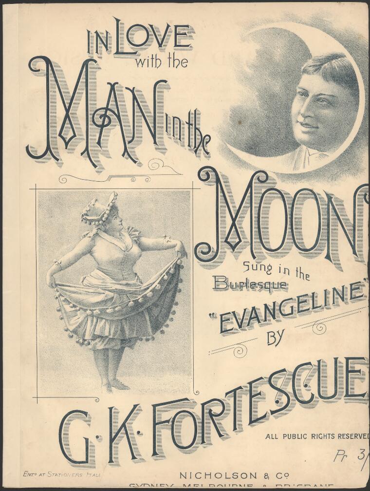 One such star, Henry E. Dixey, a young Boston-based dancer who later rose to fame in Rice's Adonis (1884), appears to have joined the production following its 1874 New York debut as one end of Evangeline's heifer (which end, it has been debated endlessly); his dancing partner, Richard Golden, assumed command of the cow's two other legs. It has been repeated anecdotally that the "Heifer Dance" originally fell flat in New York, but the comic virtuosity of the new Dixey/Golden choreography made it into a legendary showstopper. Another, George K. Fortescue joined the company for the 1876 incarnation at the Boston Museum in the transvestite role of Catherine, a part he virtually made his career. It was for Fortescue's Catherine that "In Love With the Man in the Moon" seems to have been written. Lillian Russell, perhaps the most luminous actress of Broadway's early days, was discovered while making her New York debut in the chorus of Evangeline in 1880. Additionally, N.C. "Nat" Goodwin (unlikely any close relation to J. Cheever Goodwin) joined Rice's company in 1876 as the Captain, and by 1877 had graduated to the star-making role of Le Blanc. A 20-year-old Fay Templeton made her professional stage premiere as Gabriel in the celebrated, long-running New York revival of 1885.